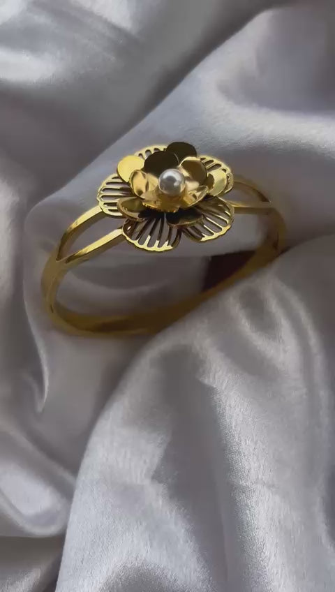 The Bloom Cuff is where delicate artistry meets everyday elegance. This handcrafted floral bracelet features layered gold-toned petals with a radiant pearl nestled at its heart — a poetic nod to timeless beauty.